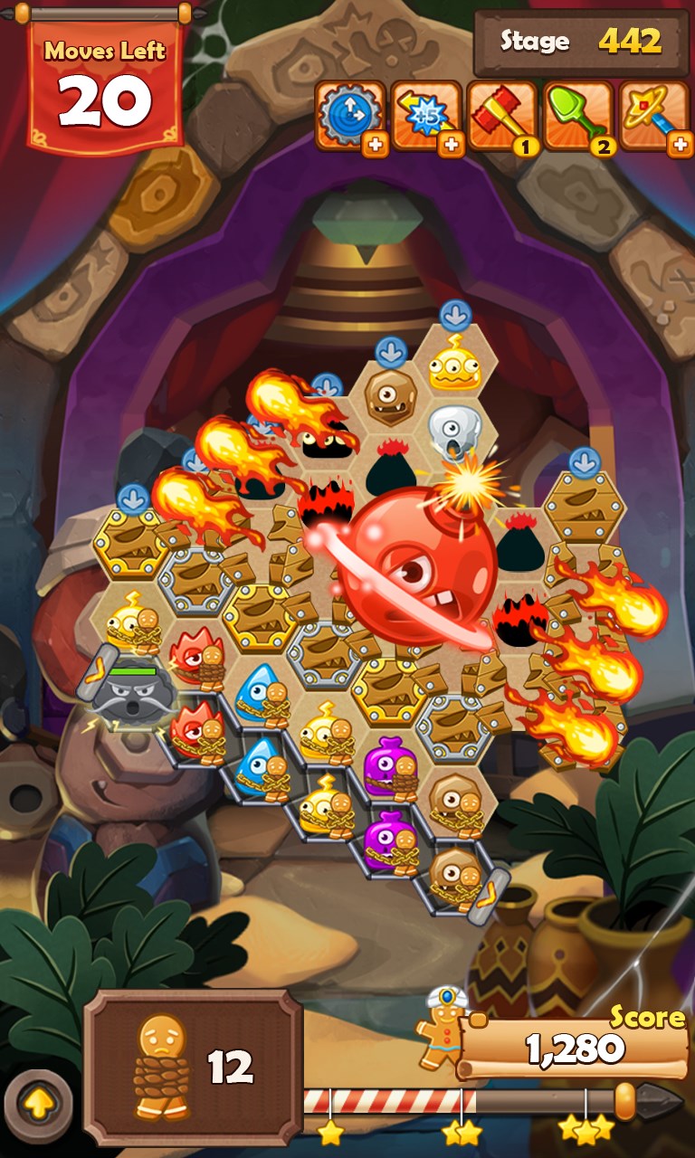 Play on a board made up of hexagons, defeat the evil monsters and climb the monster tower. Save the gingerbread friends as you clear the stages with several challenges up the tower! Progress in the game by swapping monsters and combining colors to destroy them. If you hit 3 in a row or more, the tiles will explode!